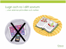 Det finns mycket spännande och roligt att titta på i paddan eller mobilen och datorn, men innan du ska sova är det bättre att läsa i en bok. Din hjärna blir annars upp-piggad av ljuset från skärmen och det blir svårare att somna då. En vanlig berättelse i en bok blir du istället lugn och sömnig av. Många säger att det känns härligt att ha en bok att läsa i varje kväll så att man har en historia i huvudet att somna till.