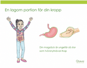 Det är bra att äta lagom mängd mat på måltiderna så att magsäcken fylls på lagom mycket. Äter du för mycket känner du dig ”proppmätt” och då töjs magsäcken ut och blir för stor. Det är bra att äta en lagom portion för din kropp. Din magsäck är ungefär så stor som båda dina knytnävar ihop.