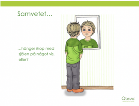 Samvetet verkar sitta någonstans nära själen och har att göra med vad som är rätt och fel. Dåligt samvete har de flesta haft om man har gjort något man egentligen visste att man inte borde göra. Kommer du på något som gett dig dåligt samvete? Ett bra samvete känner du när du gjort något på ett bra och riktigt sätt. Om du t ex hjälpt någon som blev retad kan du känna gott samvete. Ett bra sätt att känna av ditt samvete är att på kvällen se dig själv i spegeln och känna efter och fråga dig om du är nöjd med dig själv och det du gjort idag. Hur tror du den som mobbat någon kommer att känna sig när hen ser sig i spegeln?