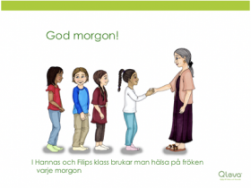 tt hälsa på varandra är ett sätt att visa respekt för varandra. Dessutom tycker Hannas fröken att det är bra att hälsa på eleverna varje morgon. Då hinner hon se lite hur var och en mår och kanske säga några ord. Men ibland blir det bra ett ”hej” och ett leende.